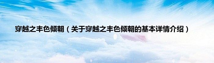 本文关于穿越之丰色倾朝的基本详情介绍就讲解完毕,希望对大家有所帮助。