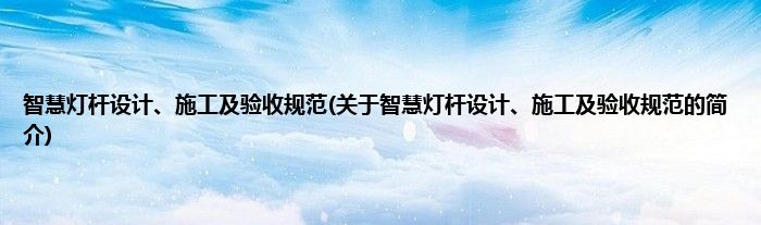 本文关于智慧灯杆设计、施工及验收规范的简介就讲解完毕,希望对大家有所帮助。