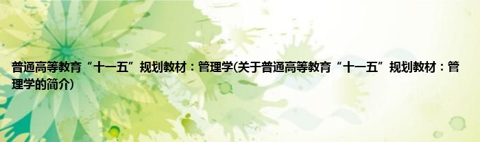 大家好,普通高等教育“十一五”规划教材:管理学,关于普通高等教育“十一五”规划教材:管理学的简介很多人还不知道,现在让我们一起来看看吧!