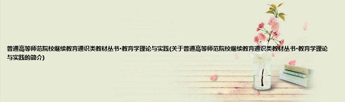 本文关于普通高等师范院校继续教育通识类教材丛书·教育学理论与实践的简介就讲解完毕,希望对大家有所帮助。