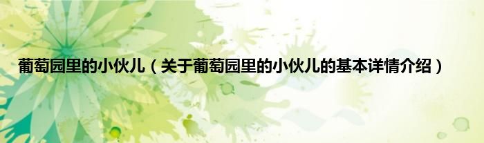 本文关于葡萄园里的小伙儿的基本详情介绍就讲解完毕,希望对大家有所帮助。