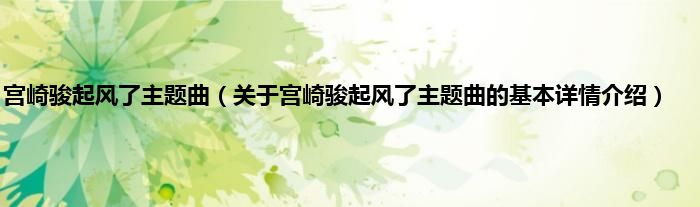 本文关于宫崎骏起风了主题曲的基本详情介绍就讲解完毕,希望对大家有所帮助。