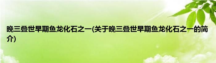 大家好,晚三叠世早期鱼龙化石之一,关于晚三叠世早期鱼龙化石之一的简介很多人还不知道,现在让我们一起来看看吧!