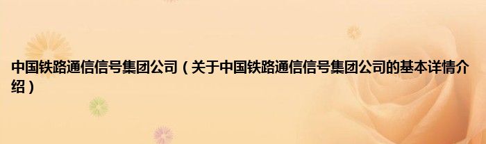 本文关于中国铁路通信信号集团公司的基本详情介绍就讲解完毕,希望对大家有所帮助。