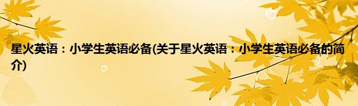 本文关于星火英语:小学生英语必备的简介就讲解完毕,希望对大家有所帮助。