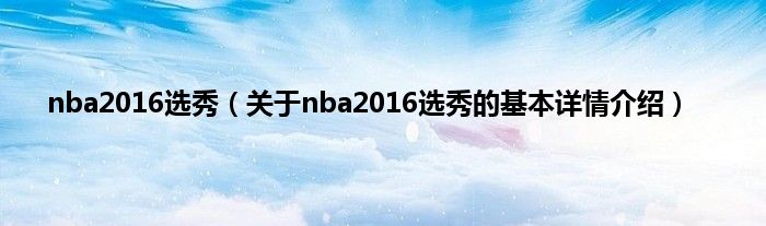 本文关于nba2016选秀的基本详情介绍就讲解完毕,希望对大家有所帮助。
