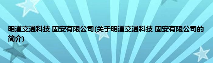 本文关于明道交通科技 固安有限公司的简介就讲解完毕,希望对大家有所帮助。