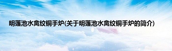 本文关于明莲池水禽纹铜手炉的简介就讲解完毕,希望对大家有所帮助。