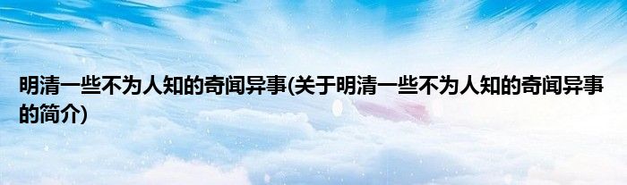 本文关于明清一些不为人知的奇闻异事的简介就讲解完毕,希望对大家有所帮助。
