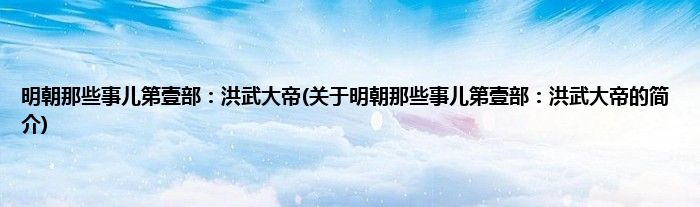 大家好,明朝那些事儿第壹部:洪武大帝,关于明朝那些事儿第壹部:洪武大帝的简介很多人还不知道,现在让我们一起来看看吧!
