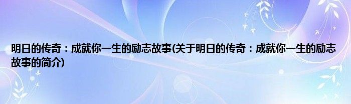 本文关于明日的传奇:成就你一生的励志故事的简介就讲解完毕,希望对大家有所帮助。