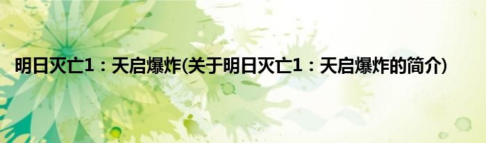 本文关于明日灭亡1:天启爆炸的简介就讲解完毕,希望对大家有所帮助。