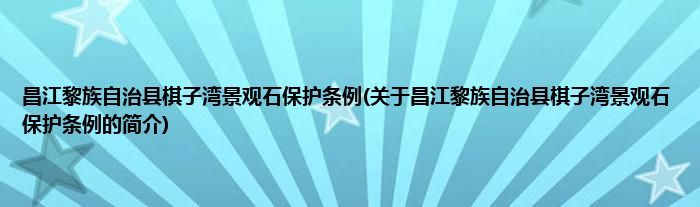 本文关于昌江黎族自治县棋子湾景观石保护条例的简介就讲解完毕,希望对大家有所帮助。
