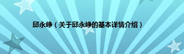 本文关于邱永峥的基本详情介绍就讲解完毕,希望对大家有所帮助。