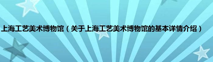 本文关于上海工艺美术博物馆的基本详情介绍就讲解完毕,希望对大家有所帮助。