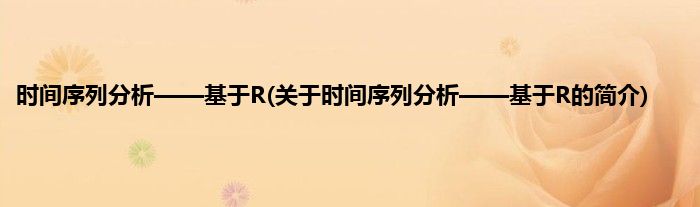 大家好,时间序列分析——基于R,关于时间序列分析——基于R的简介很多人还不知道,现在让我们一起来看看吧!