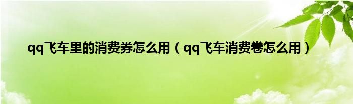 以上就是【qq飞车里的消费券怎么用,qq飞车消费卷怎么用】相关内容。