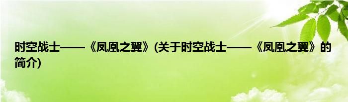 本文关于时空战士——《凤凰之翼》的简介就讲解完毕,希望对大家有所帮助。