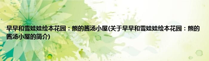 本文关于早早和雪娃娃绘本花园:熊的酱汤小屋的简介就讲解完毕,希望对大家有所帮助。