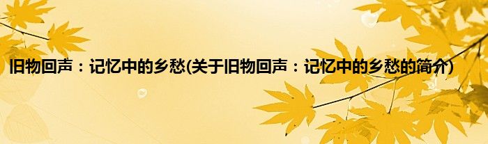 本文关于旧物回声:记忆中的乡愁的简介就讲解完毕,希望对大家有所帮助。