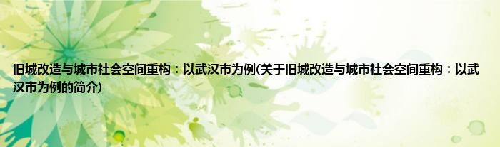 本文关于旧城改造与城市社会空间重构:以武汉市为例的简介就讲解完毕,希望对大家有所帮助。