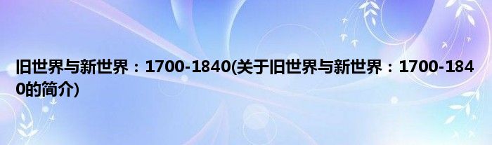 大家好,旧世界与新世界:1700-1840,关于旧世界与新世界:1700-1840的简介很多人还不知道,现在让我们一起来看看吧!