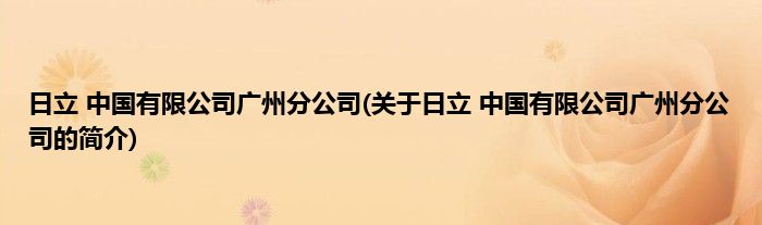 本文关于日立 中国有限公司广州分公司的简介就讲解完毕,希望对大家有所帮助。