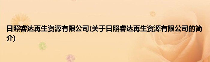 本文关于日照睿达再生资源有限公司的简介就讲解完毕,希望对大家有所帮助。