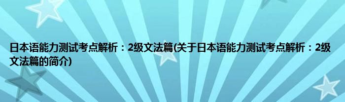 本文关于日本语能力测试考点解析:2级文法篇的简介就讲解完毕,希望对大家有所帮助。