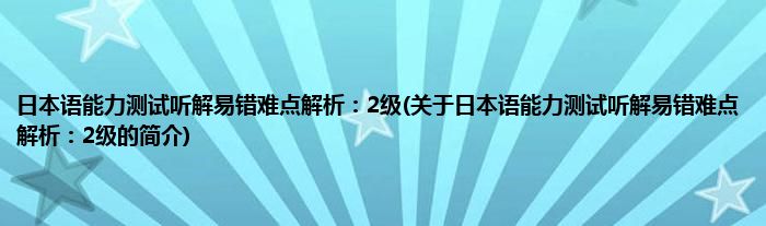 大家好,日本语能力测试听解易错难点解析:2级,关于日本语能力测试听解易错难点解析:2级的简介很多人还不知道,现在让我们一起来看看吧!