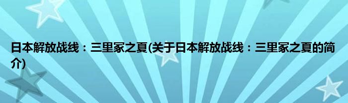 本文关于日本解放战线:三里冢之夏的简介就讲解完毕,希望对大家有所帮助。