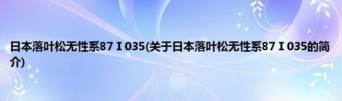本文关于日本落叶松无性系87Ⅰ035的简介就讲解完毕,希望对大家有所帮助。