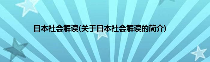 大家好,日本社会解读,关于日本社会解读的简介很多人还不知道,现在让我们一起来看看吧!