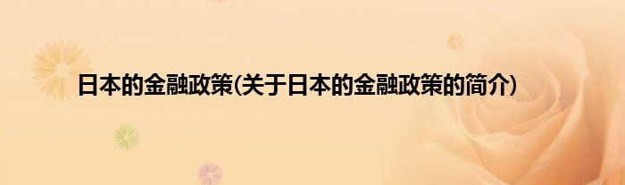 本文关于日本的金融政策的简介就讲解完毕,希望对大家有所帮助。