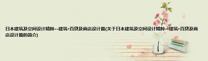 本文关于日本建筑及空间设计精粹--建筑·百贷及商店设计篇的简介就讲解完毕,希望对大家有所帮助。