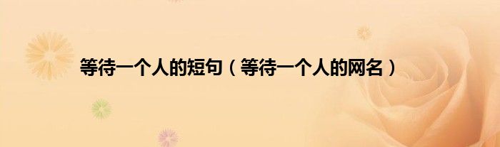 大家好,小问来为大家解答以上问题。等待一个人的短句,等待一个人的网名这个很多人还不知道,现在让我们一起来看看吧!