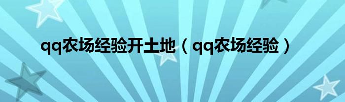 以上就是【qq农场经验开土地,qq农场经验】相关内容。