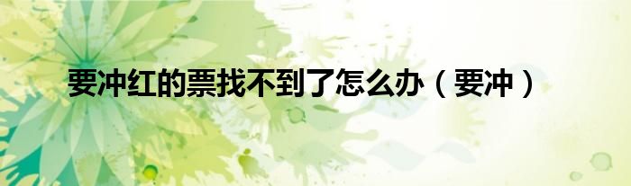 以上就是【要冲红的票找不到了怎么办,要冲】相关内容。