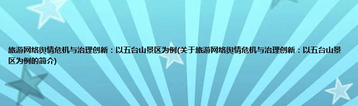 本文关于旅游网络舆情危机与治理创新:以五台山景区为例的简介就讲解完毕,希望对大家有所帮助。