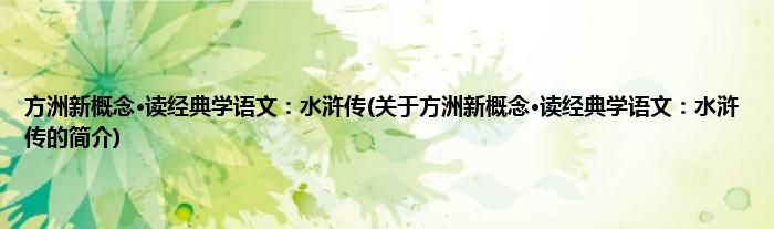 本文关于方洲新概念·读经典学语文:水浒传的简介就讲解完毕,希望对大家有所帮助。