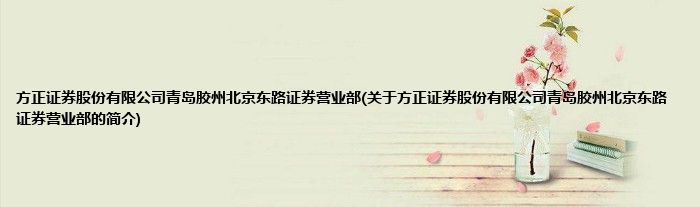 本文关于方正证券股份有限公司青岛胶州北京东路证券营业部的简介就讲解完毕,希望对大家有所帮助。