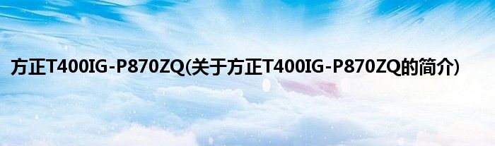 1、 方正T400IG-P870ZQ是方正品牌旗下的一款产品。
