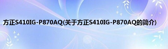 本文关于方正S410IG-P870AQ的简介就讲解完毕,希望对大家有所帮助。