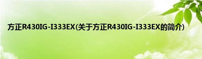 本文关于方正R430IG-I333EX的简介就讲解完毕,希望对大家有所帮助。