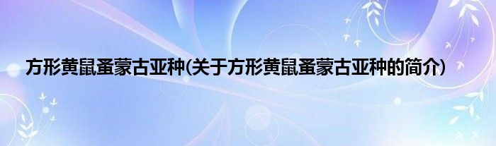 本文关于方形黄鼠蚤蒙古亚种的简介就讲解完毕,希望对大家有所帮助。