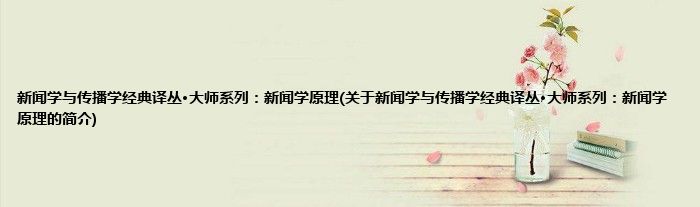 本文关于新闻学与传播学经典译丛·大师系列:新闻学原理的简介就讲解完毕,希望对大家有所帮助。