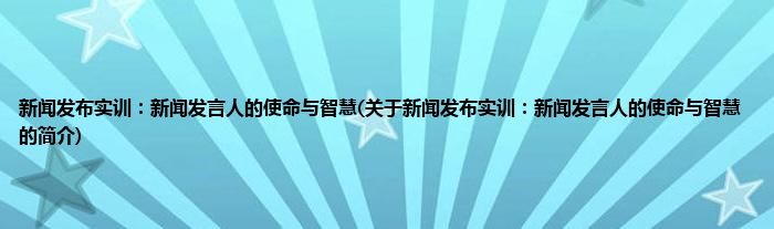 大家好,新闻发布实训:新闻发言人的使命与智慧,关于新闻发布实训:新闻发言人的使命与智慧的简介很多人还不知道,现在让我们一起来看看吧!