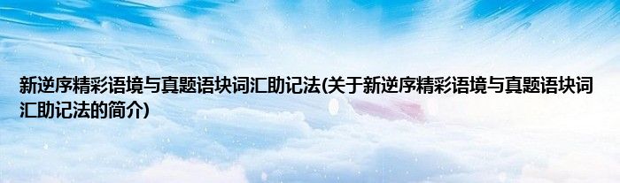 本文关于新逆序精彩语境与真题语块词汇助记法的简介就讲解完毕,希望对大家有所帮助。