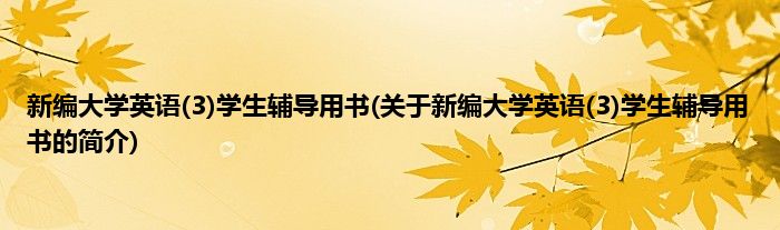 1、 《新编大学英语(3)学生辅导用书》是1999年外语教学与研究出版社出版的图书。