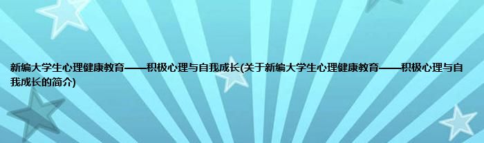 本文关于新编大学生心理健康教育——积极心理与自我成长的简介就讲解完毕,希望对大家有所帮助。